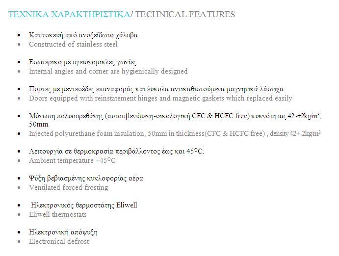 Ψυγείο βιτρίνα συντήρηση με διπλά τζάμια, κυκλοφορία αέρα, ψυχώμενη και με δύο θερμοστάτες για ανεξάρτητη ψύξη στον θάλαμο και στην βιτρίνα.